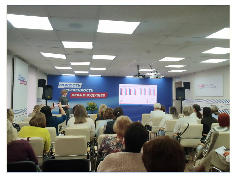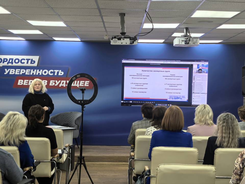 Начальник отдела сопровождения аттестационных процедур Татьяна Викторовна Коротаева познакомила с результатами деятельности экспертов и экспертных групп в 2023-2024 учебном году. Ценным было указание на основные недочёты как аттестуемых педагогов, так и самих экспертов. Подробно была рассмотрена нормативно-правовая база процедуры аттестации педагогических работников, чётко обозначены изменения, произошедшие на сайте «Портфолио».