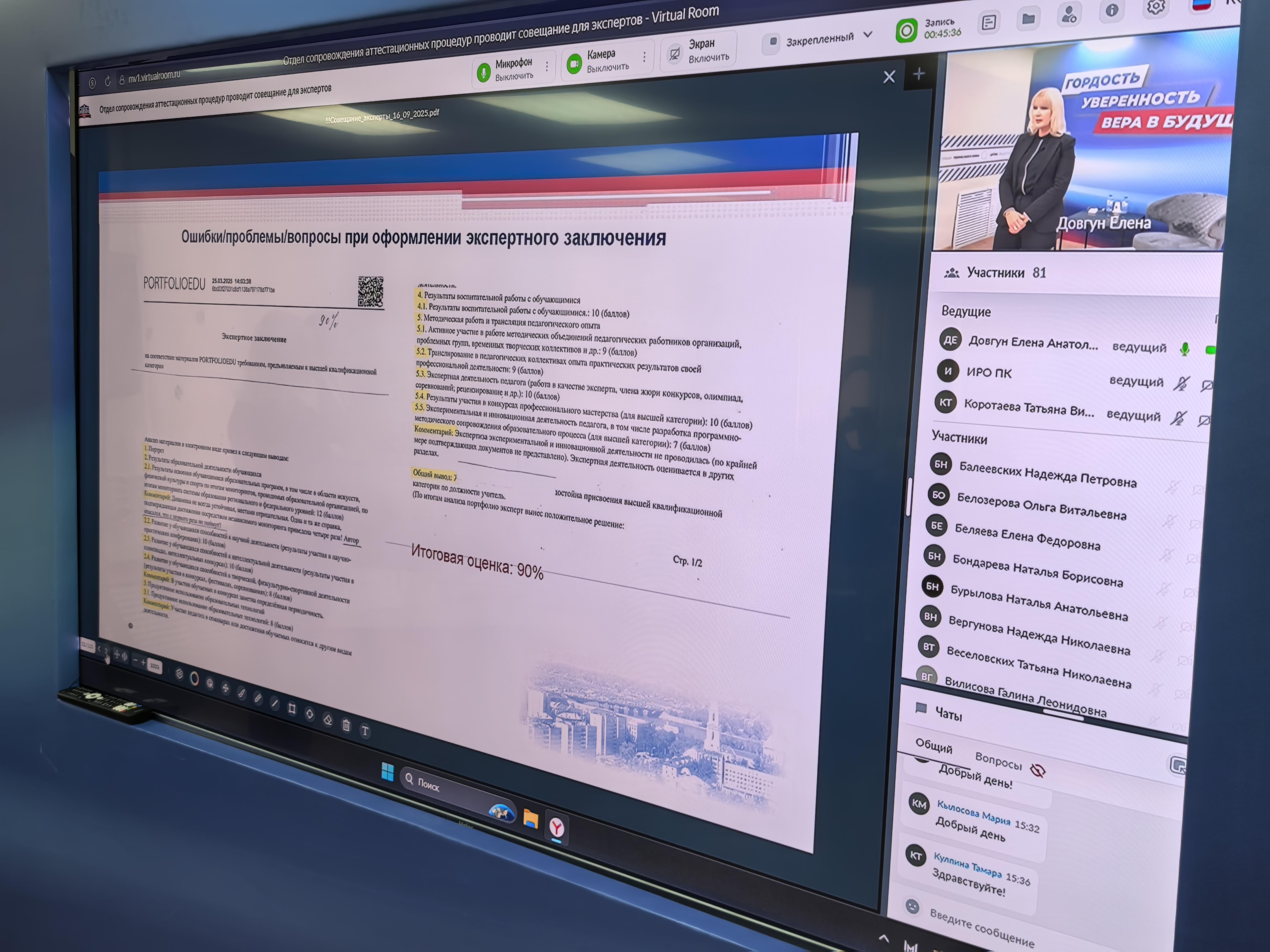 16 сентября 2025 года отдел сопровождения аттестационных процедур центра непрерывного повышения профессионального мастерства педагогических работников ГАУ ДПО "ИРО ПК" провёл совещание для экспертов, осуществляющих экспертизу аттестационных материалов педагогических работников на первую и высшую квалификационные категории.