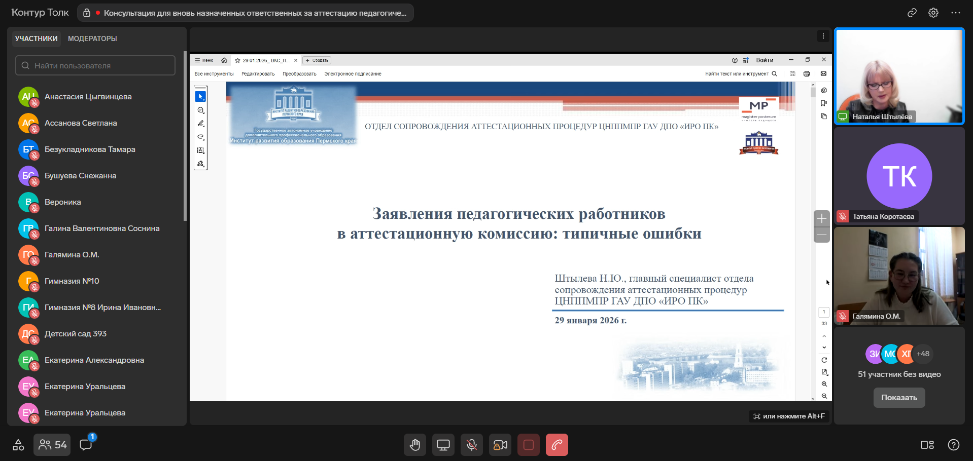 В мероприятии приняли участие более 50 человек, ответственных за аттестацию педагогов в образовательных организациях города Перми.